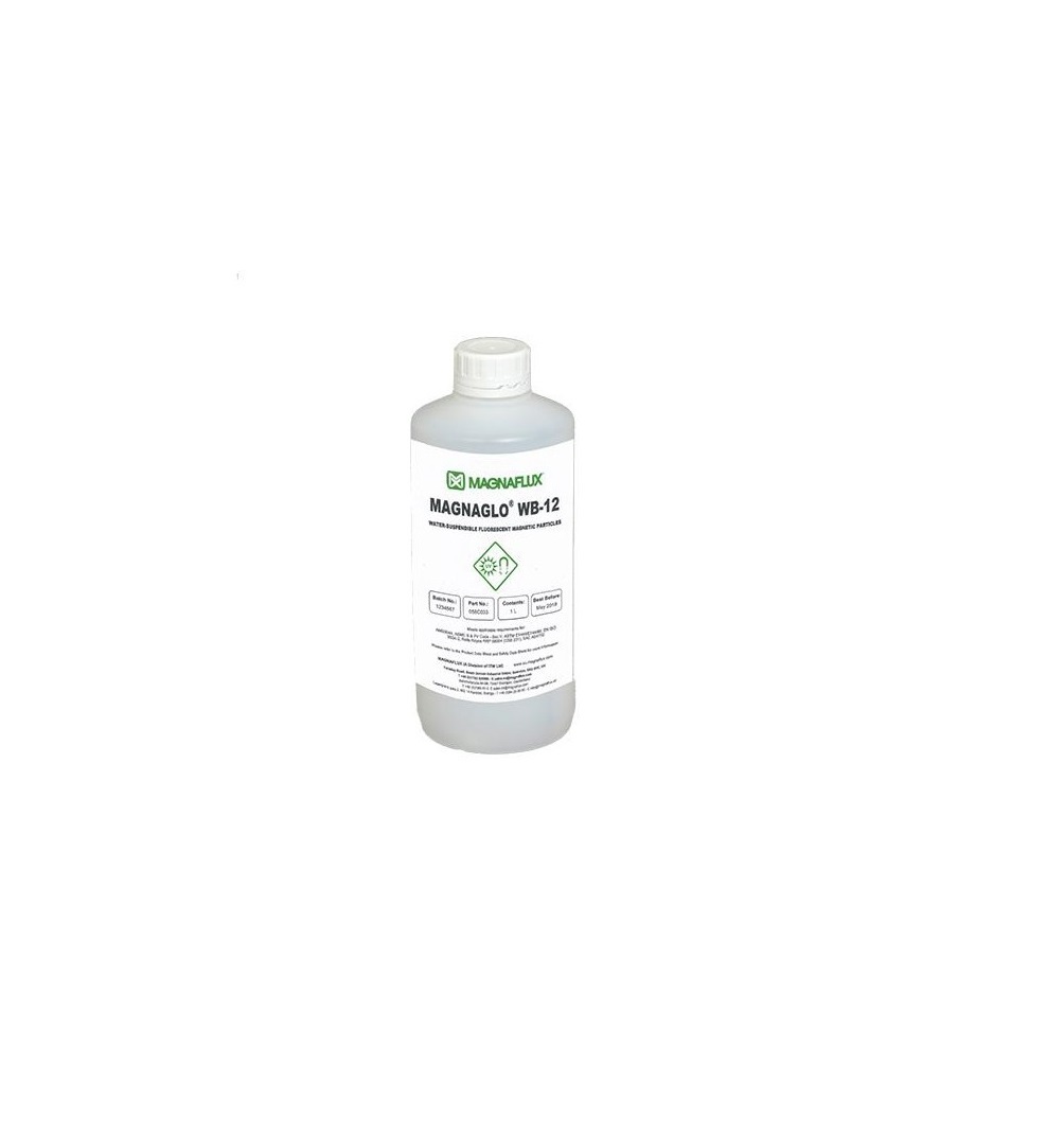 مایع فلورسنت تست MT مگنافلاکس wb-12 ترک یاب mt با حجم 1 لیتر در حالت عادی به رنگ قهوه ای می باشد که زیر نور لامپ uv به رنگ سبز روشن فسفری در می آید. در دنیا این مایع فلورسنت mt اشاره به water-based شده یعنی پایه آب گستره دمایی wb-12.-5 تا 48° سانتیگراد می باشد. در این تست دیگر نیازی به اسپری white نمی باشد