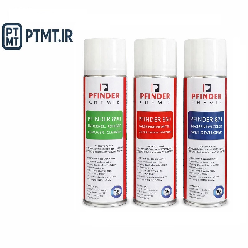ست اسپری جوش ترک یاب PFINDER PT آلمانی 500 میل پیفایندر PFINDER ساخت کشور آلمان جهت انجام تست مایعات نافذ استفاده میشود.این اسپری با ذرات نفوذ بسیار قوی قدرت نفوذ بالایی دارد و در نتیجه عیوب سطحی جوش را به خوبی نمایان می نماید. اسپری جوش ترک یاب دارای قدرت پاک کنندگی، نفوذ و آشکارسازی بسیار بالا است.